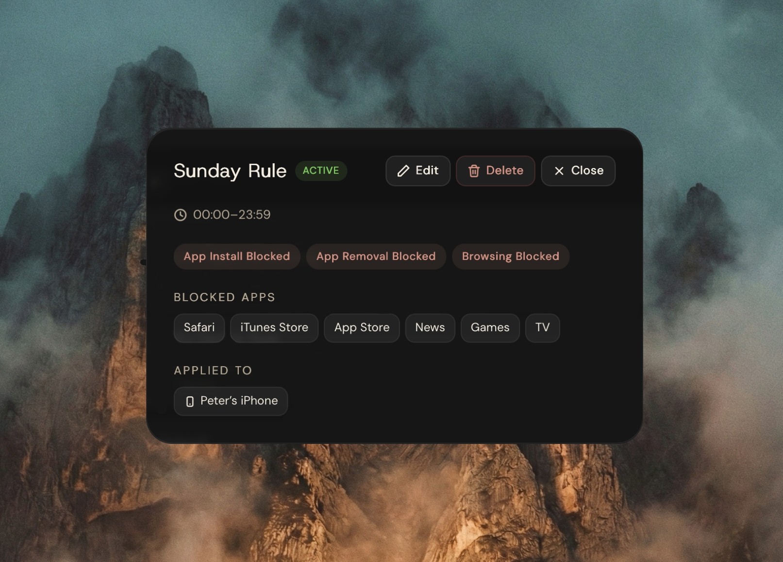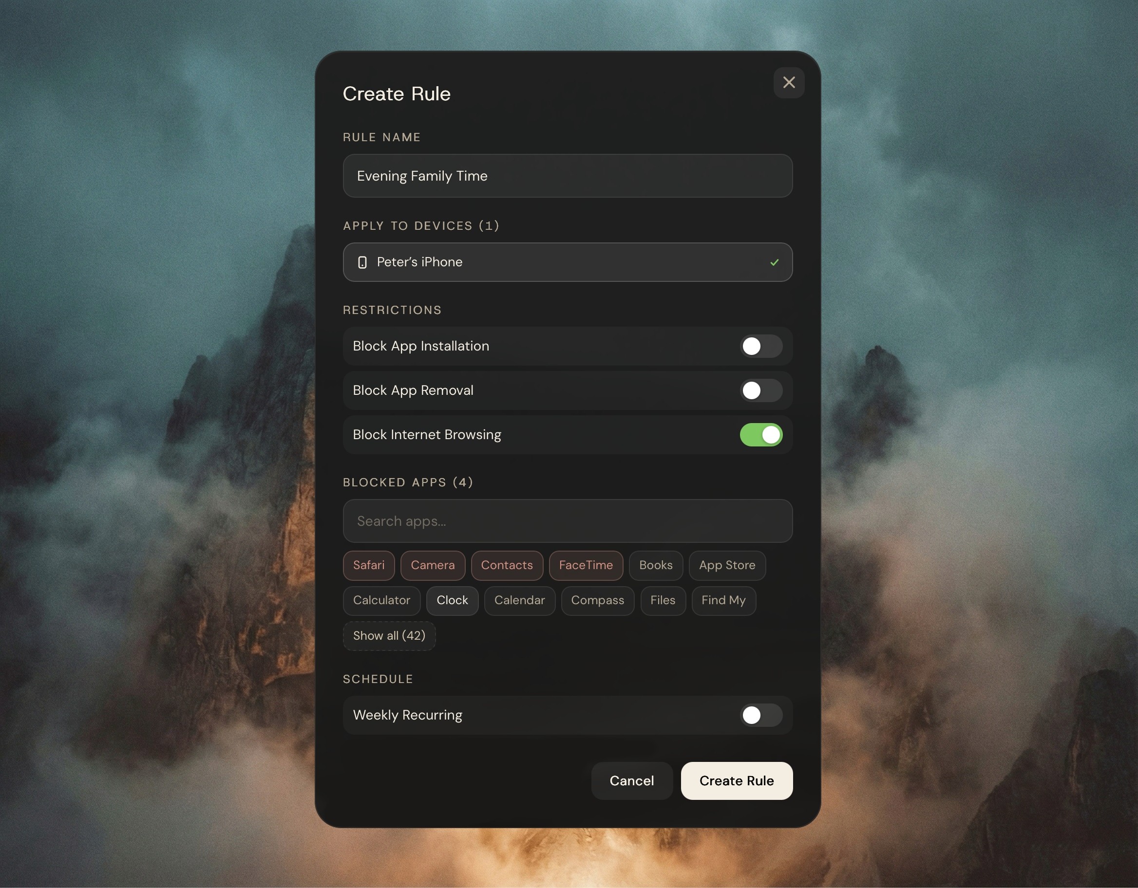Choose what apps and device abilities are allowed at what times.